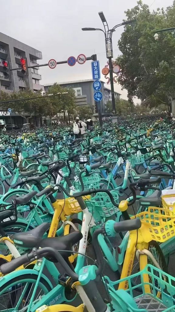 看视频说主干道都被大学生共享单车停满了,搞得很多人上班出勤全堵那了。