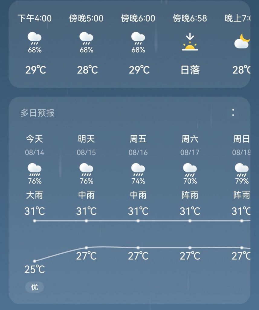 虽然正中午的时候还是有些热,但是早晨和晚上真凉快了,可以不开空调了. 最主要是湿度低,所以体感舒服.