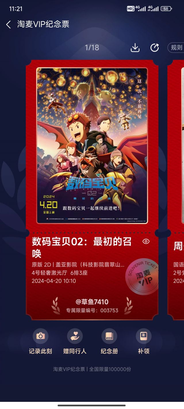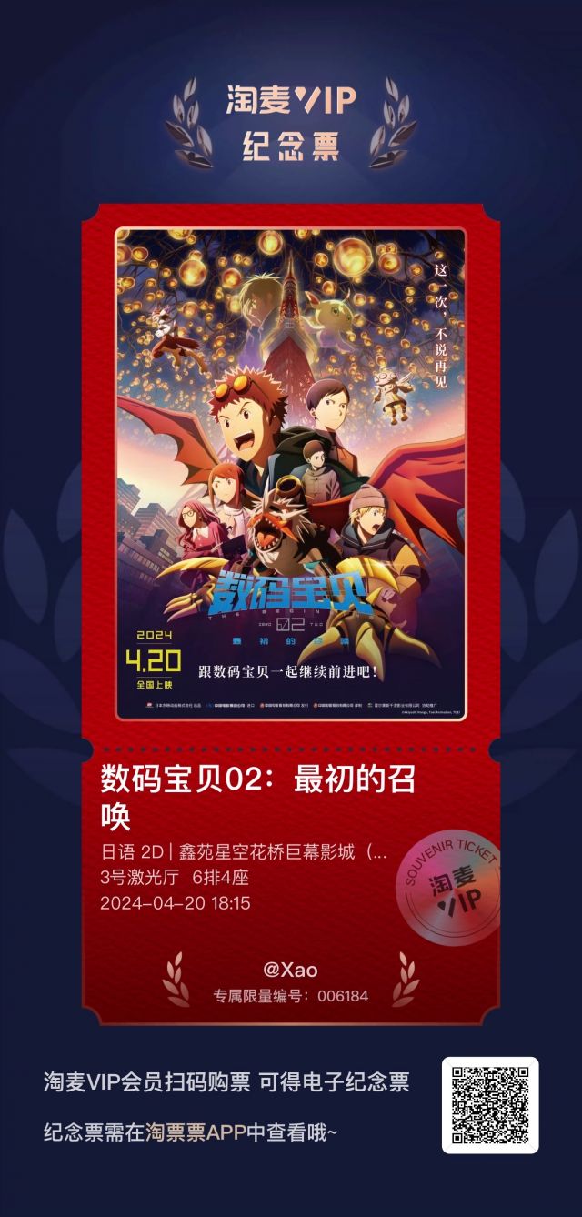 1、本帖回复,晒出自己的《数码宝贝:最初的召唤》观影记录(可以是实体票照片,也可以是电子订票记录)