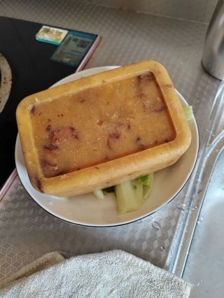 哈哈哈哈,前几天做的羊肉,放了点土豆,给炖成糊糊了,下面垫点青菜,蒸一下