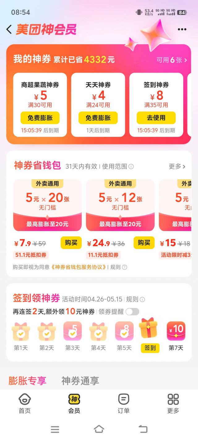 会员折扣地址比较好试出来,膨胀地址你试的时候就不得不消耗神券来膨胀看看有没有大额的,如果没有大额的,只要你的神券包都没有拿去消费,可以找ai客服说神券退款,就可以退掉神券包,重新买重新换地址去试膨胀