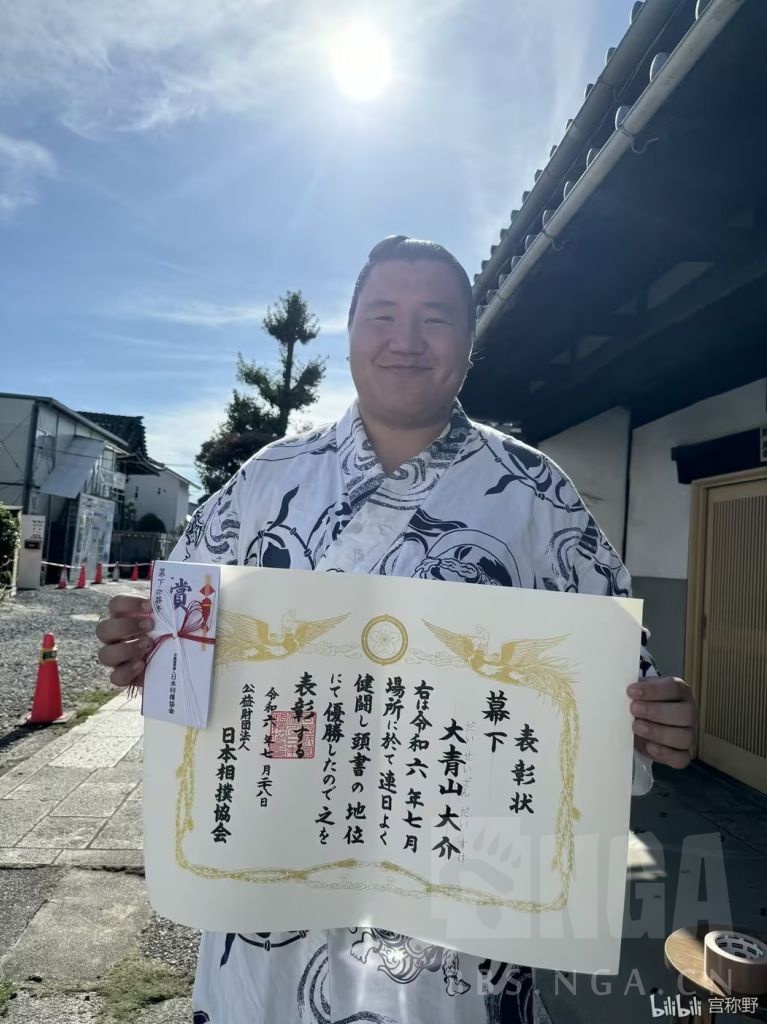 本月,无就人在意还正好赶上奥运的日本大相扑,幕下级别比赛,中国小伙大青山7战全胜提前优胜,并且确认升到十两级别