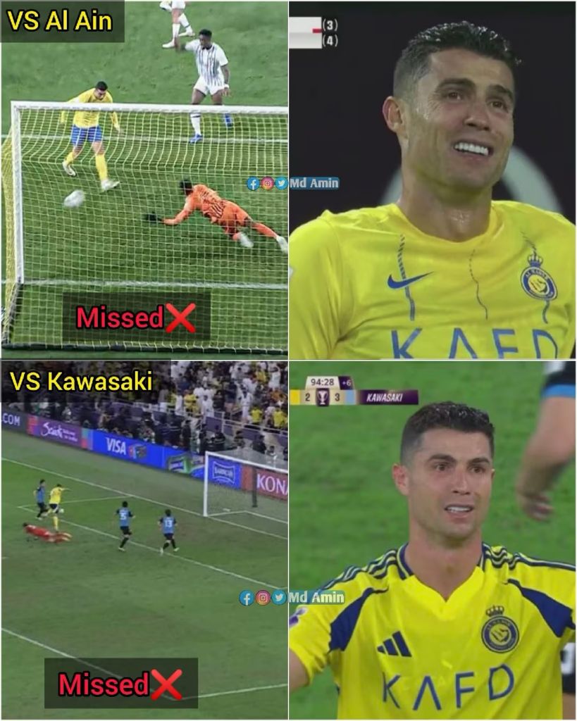 24-25赛季亚冠,c罗在利雅得胜利,被身价不足胜利11分之一的川崎前锋淘汰。