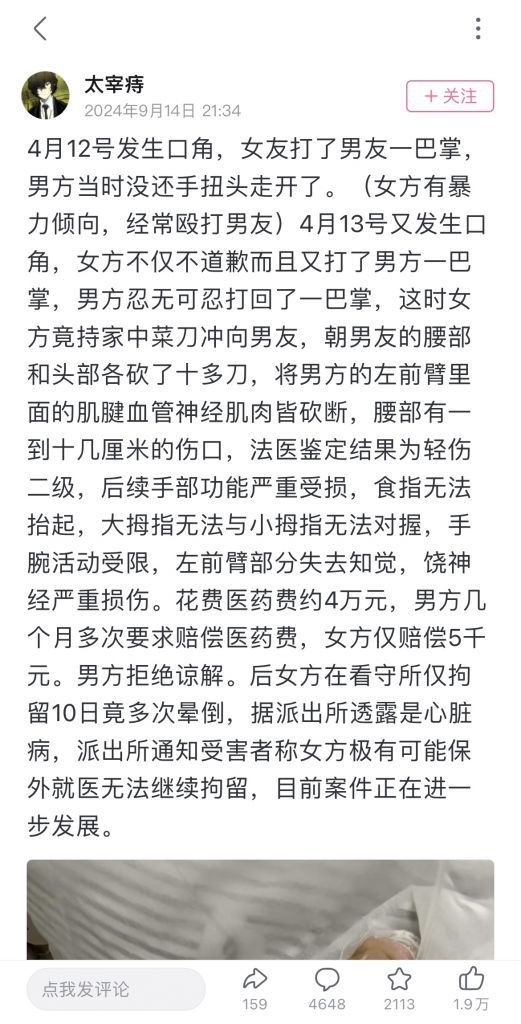 (我承认打产妇是我不对,但每次疯狂的打砸家中物品+暴力对待我,终究有那么一次按耐不住)