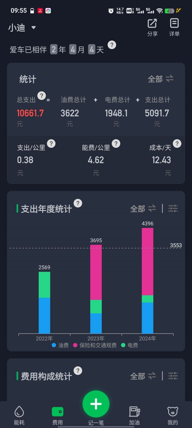 每年1.2w市内 3k高速 市内电价0.44 高速油耗5l