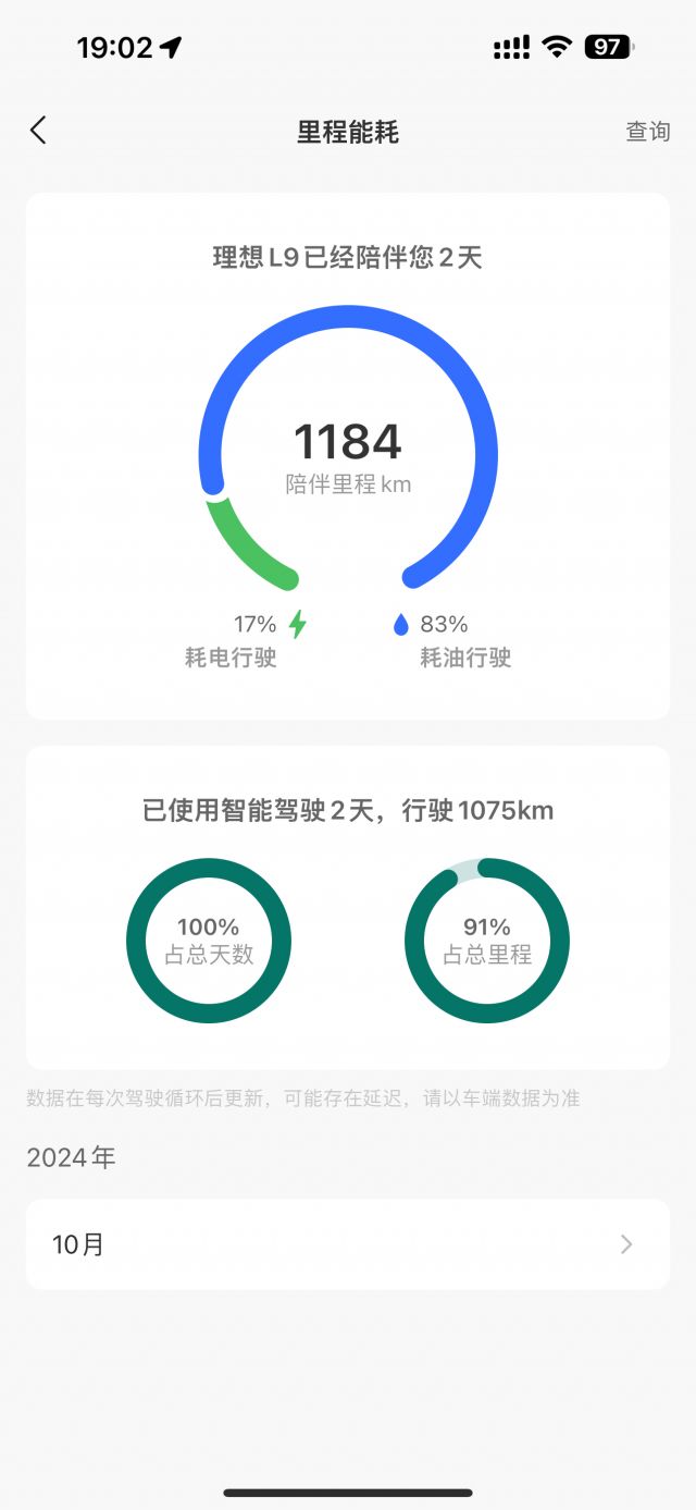 到家后剩余纯电续航188KM,燃油续航834KM。这个能耗和花费我很满意了。
