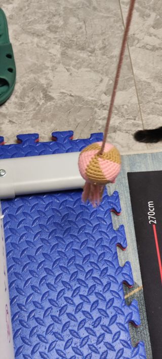 我家大猫就喜欢咬逗猫棒的线,咬断了嚼嚼就咽下去了,小猫就不会咬