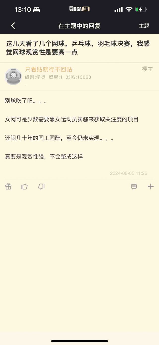 总上来说,奥运女网这个项目,对于奥运不重要,对于网球不重要。网球这个项目自身价值竞争不过其它项目,跑到奥运会里面来,在一众商业化更差的项目里面比较商业价值,多多少少有些乡镇编制的感觉