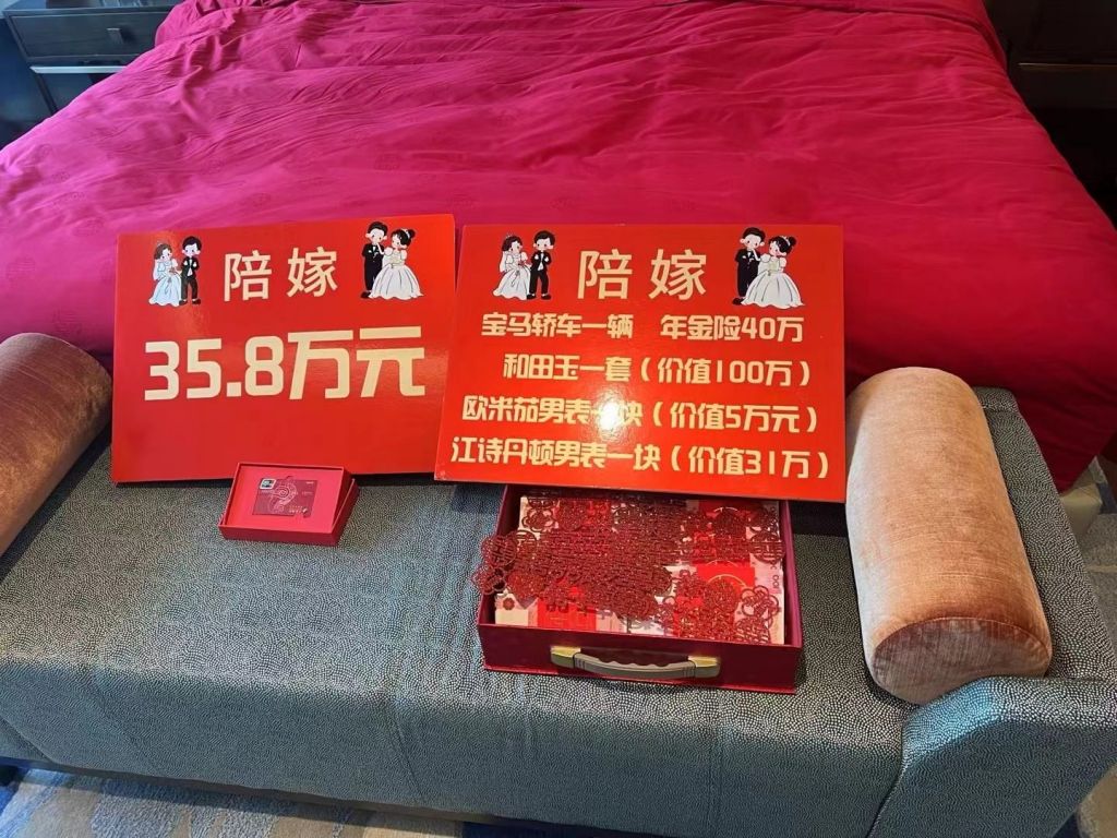 坐标苏B上个月结婚的一个女性朋友的嫁妆。当然她家条件属于很好的那种,彩礼多少不知道,嫁了个昆山的,男方好像做医疗行业的