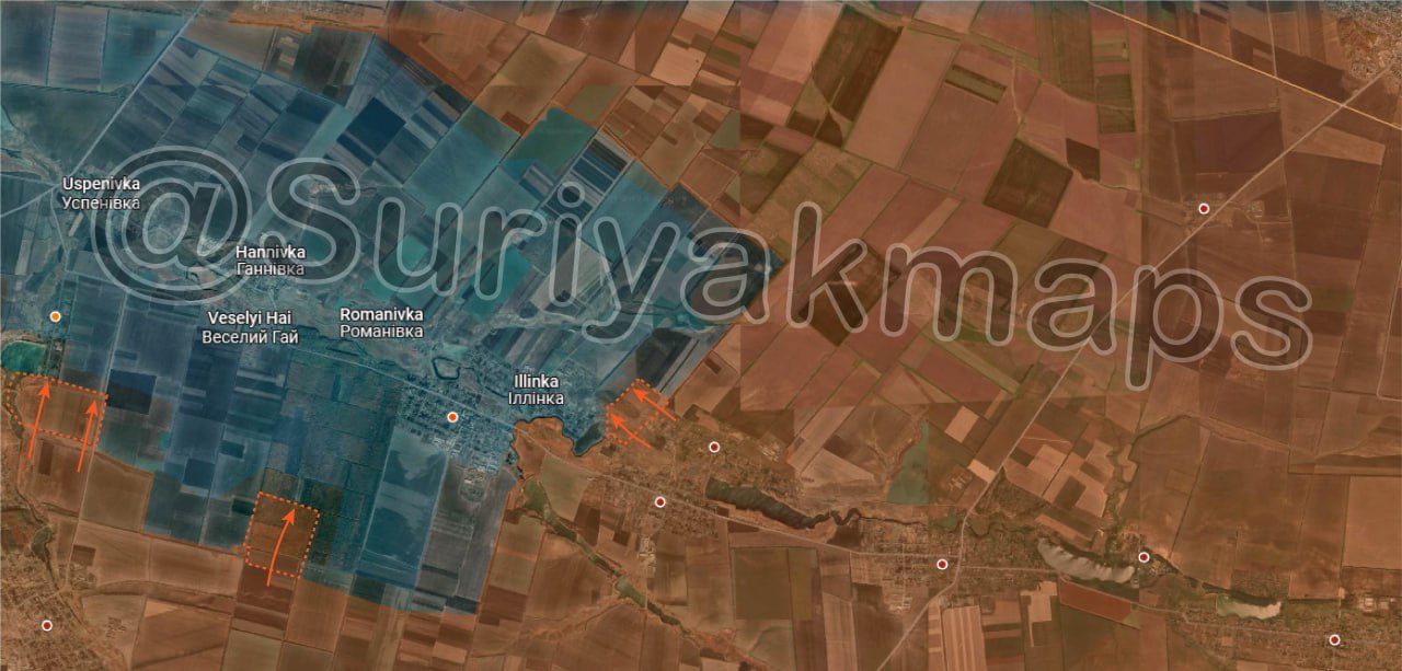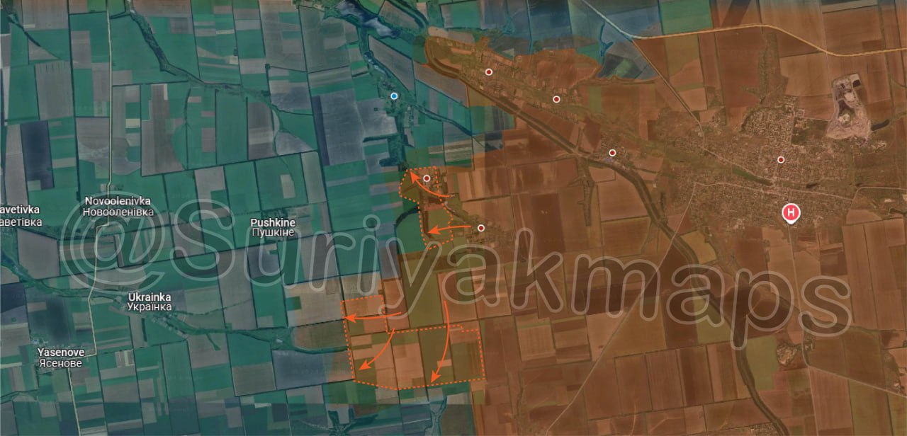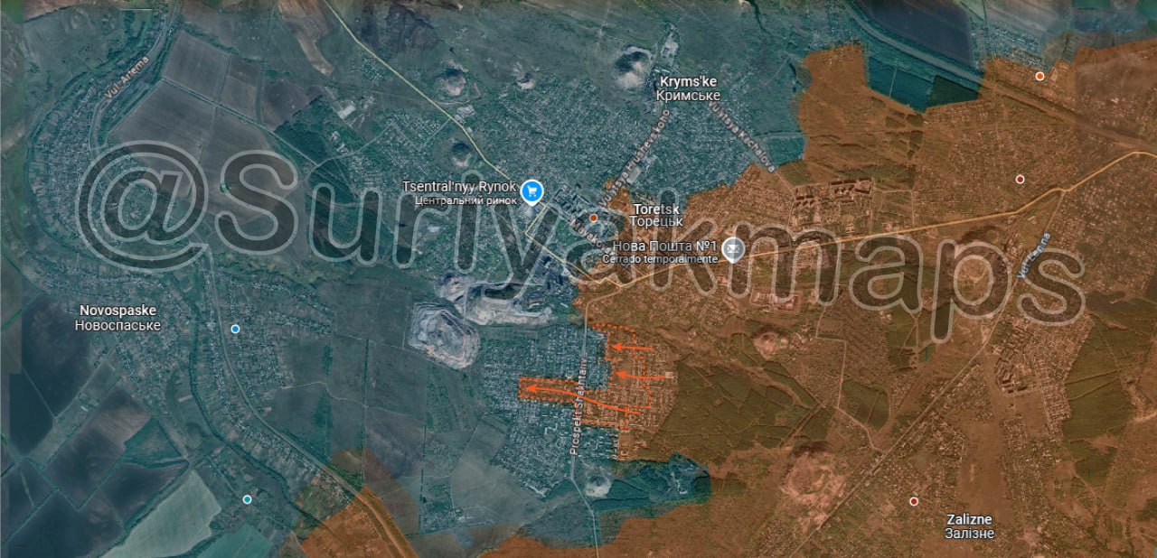 红军城——季米特洛夫战线,在谢利多沃西边的行动仍在持续,目前,俄军已经占领了新阿列克谢耶夫卡北边的尤里耶夫卡。