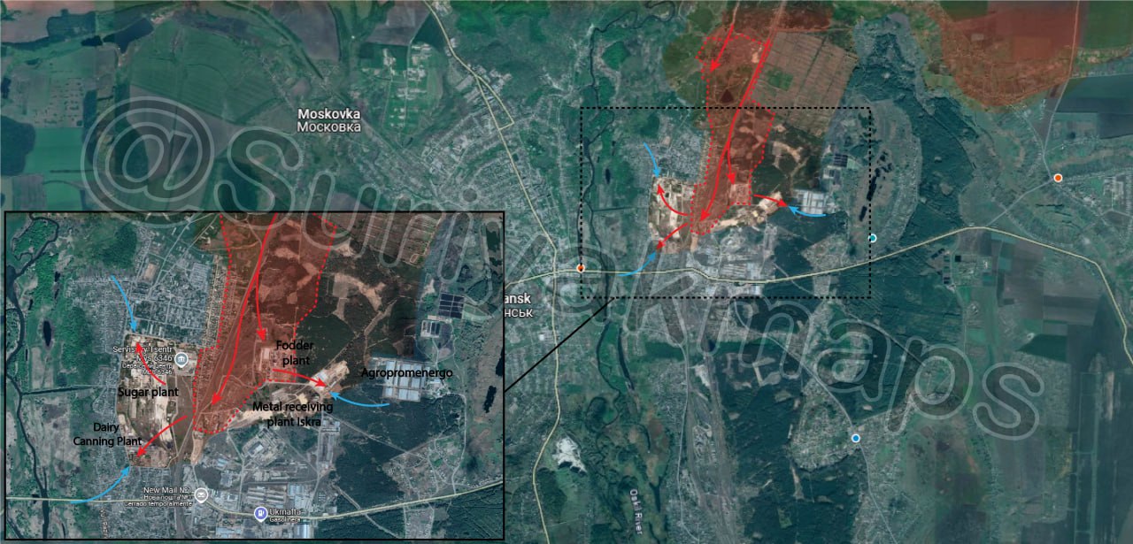目前,能够确认俄军占领了铁路线东边的谷饲厂,同时,糖果厂、乳制品罐头加工厂、金属集中加工厂则都在爆发战斗,目前尚不知晓具体情况。