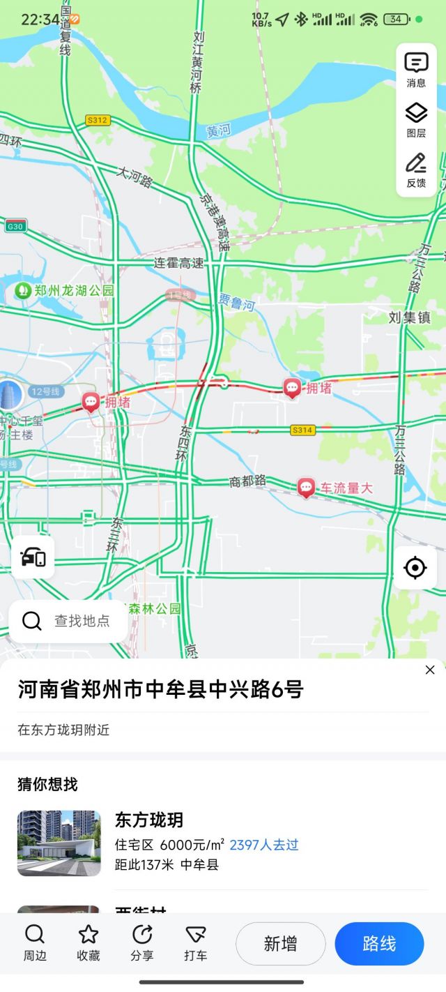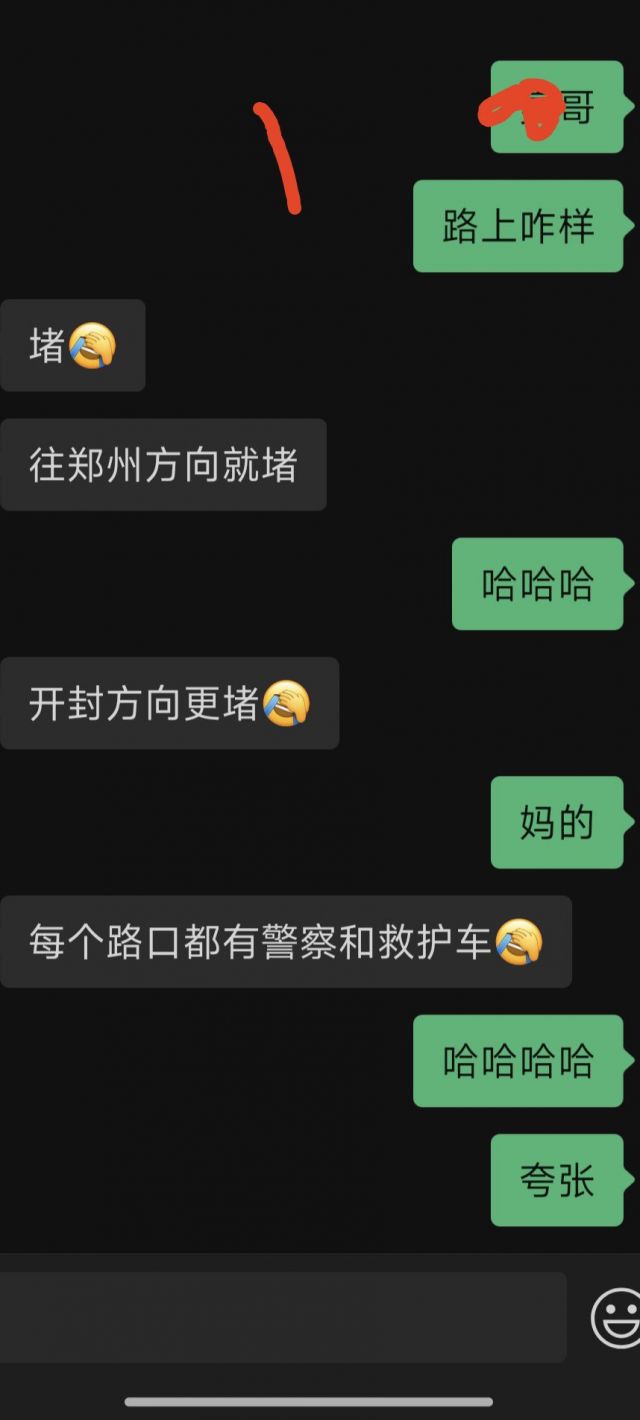 一个在中牟上班朋友。堵在了郑开大道回不了家