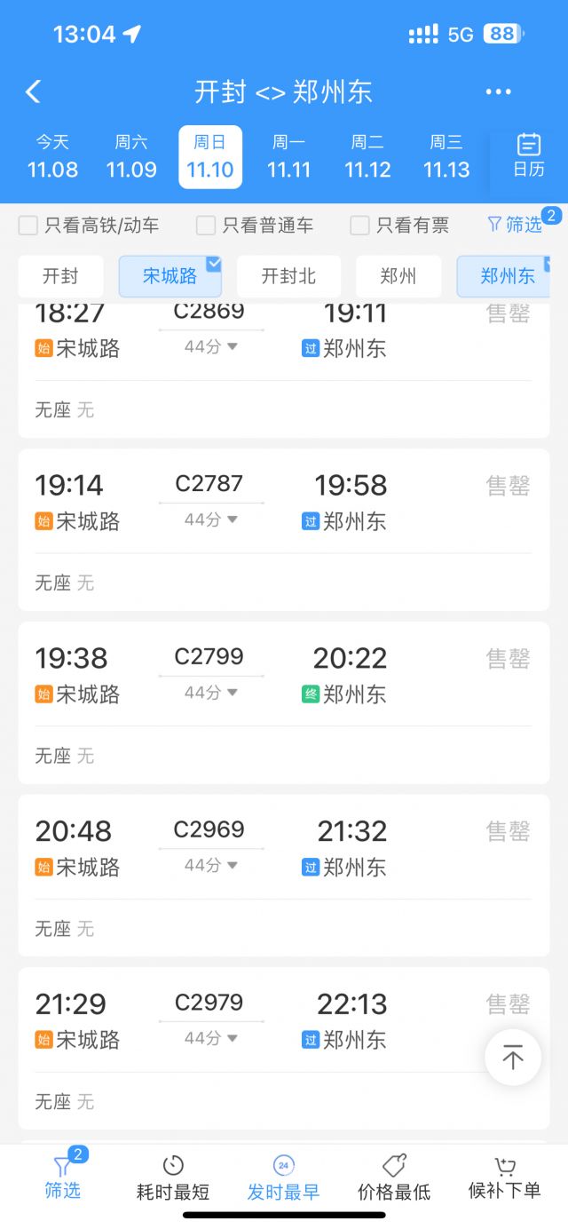 看了一下开封郑州回去的车票已经买不到了