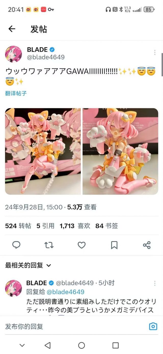 曾经寿屋新拼装武装神姬企划的第二弹(B2)猫型神姬,因为某K字头公司的大人原因,企划项目似乎要无疾而终,不过不知道最终是亲爹BLADE的爱得到了回应,还是寿屋的执念所致,最终作为女神装置第26弹PUNIMOFU 猫猫 打赢了复活赛。