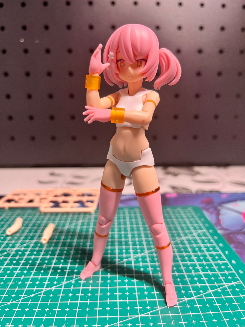 整体和BUSTER DOLL系列的Block2-M素体体型差距一目了然,除了四肢外腹部、躯干的尺寸均进行了调整而非等比例缩小,所以萝莉体型的肉感非常明显。