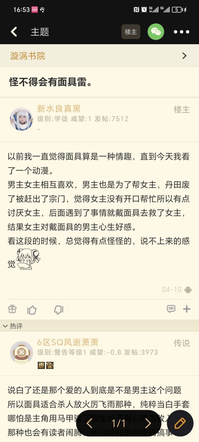 我其实比较想问的是后宫文里的新女角色,先喜欢上面具,对男主没啥想法,这种情况算哪档雷