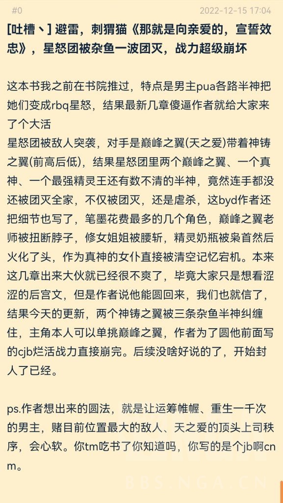 第四次是《杀神永生》,其实本来我是没反应过来自己被恶心的,刚开始看的时候只在意书里的脑洞,觉得写得不错。结果有次在书院里看到个帖子讨论,进来一看,下面有个哥们复制原文评论说主角看着自己女朋友在教室里被老师玷污,然后主角还无能为力。我看到之后也想起来貌似真有这剧情,就像是之前没吃到的💩,在后面又给补上了,刚tm恶心了