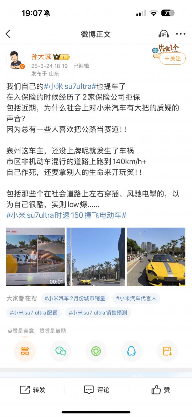 su7u发布之后,米车的形象都是正面形象,颜值高、性能好、性价比高,要是平常也没啥
