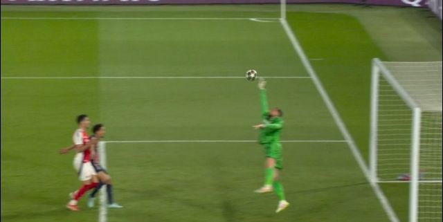 圆神那脚在最后一刻之前比门框还高,往左边的弧线也更大,门将没有任何办法