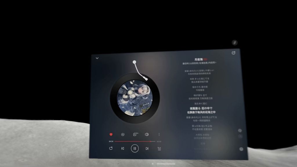 第二个功能就是用它的沉浸模式听歌,得益于苹果本家制作的几个超高精度360°环绕的场景,想象一下,你坐在月球上听自己喜欢的歌曲,远处就是太阳 地球 和你交相呼应 是种什么样的体验,不必我多说