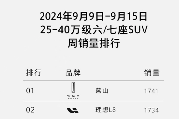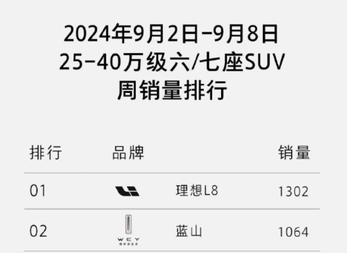 坦克是真不少买,长城越野基本盘还是稳。新蓝山没想到能破6000,这价位的车还是6座的,就是理想l8其实也卖的不是特别多。