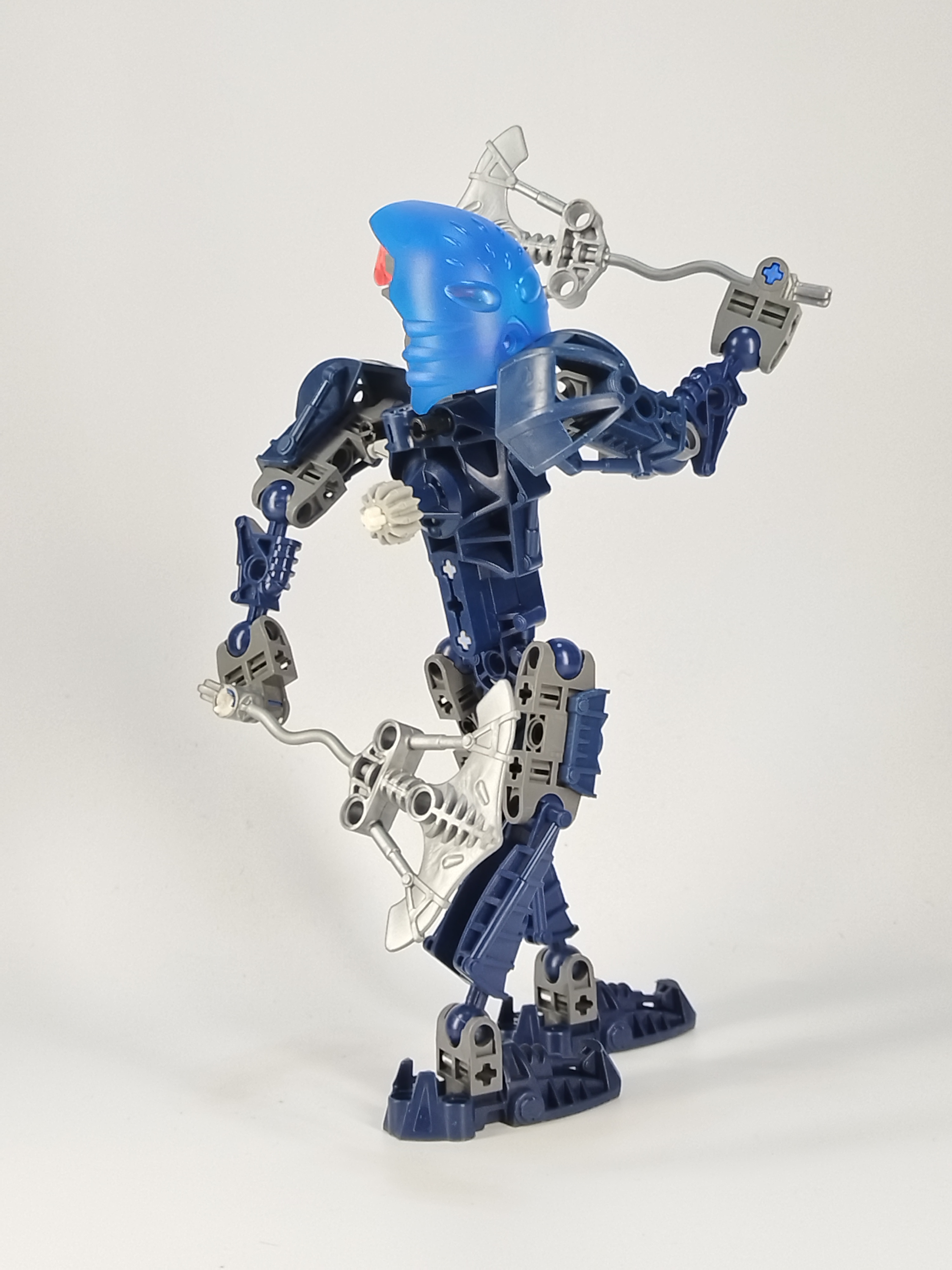 双十一暂时没什么想要的,正好前段时间偶然刷到了一套价格合适的生化战士玩具,直接重燃了我对这个系列最初的热情,也正好趁这个机会分享下这些童年英雄的故事。他们真的是我小时候最想要的玩具中能排进前三的存在了,但在我那边的三线小城市也就偶尔在商场的乐高专柜看到过故事中最底层的小喽啰瓦奇杂兵,当时一罐这样的杂兵售价高达98元 20年前的98元对于一个只有几岁的小屁孩来说无疑属于天价级别 就更不用想那些见都没见到过的战士罐了。即便如此我最终还是拥有了人生中第一款生化战士相关的玩具,现在我都还记得那天放学后在巷口拐角的街边玩具摊看到的唯一一盒盗版战士玩具的场景,十多块的价格依然算是一笔“巨额开销”,最后在我软磨硬泡之下家里人还是给我买下了这款玩具。回想起来这款盗版还挺离谱的,他居然采用了01年乐高发售的第一代土战士的素体搭配今天帖子的主角中土战士的面具,后者则发售于04年,但不得不说这盗版质量还挺好的,我至今还记得他的眼睛采用了和正版一样的透明件,而且还保留了正版素体转动背后的齿轮联动持有武器的双臂上下挥舞的玩法,那时的我能这样玩上一整个课间,直到我后来长大渐渐把它遗忘在了不知哪个角落。