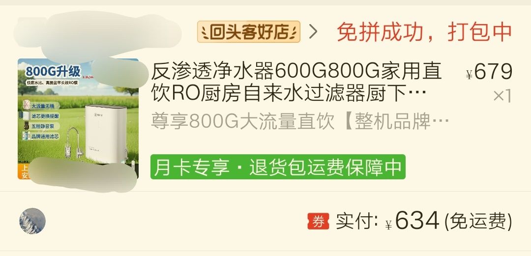 换芯一千多简直离谱,反正我现在买了个小牌的,800g上门安装也就六百多,而且考虑到换芯难度问题和频率问题还是买的3芯版,也就是复合+ro+t33碳。