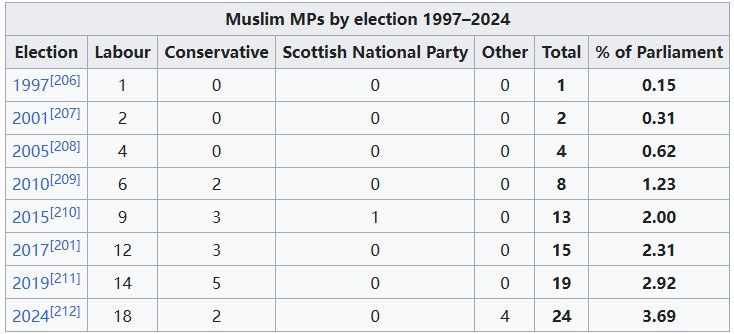 同时,英国议会的穆斯林议员人数也达到新高,今年共有24名穆斯林议员当选。