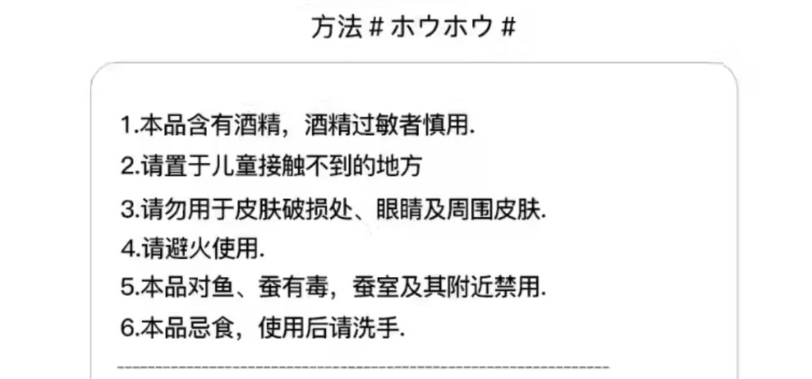 我把防蚊水翻过来一看,配料表全是片假名,我说这你看得懂吗你就说有乙醇