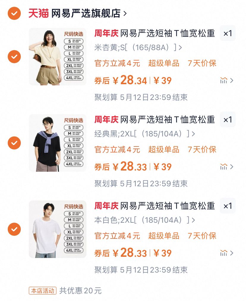 班尼路S&K系列重磅纯棉短袖T恤任选2件59.2元