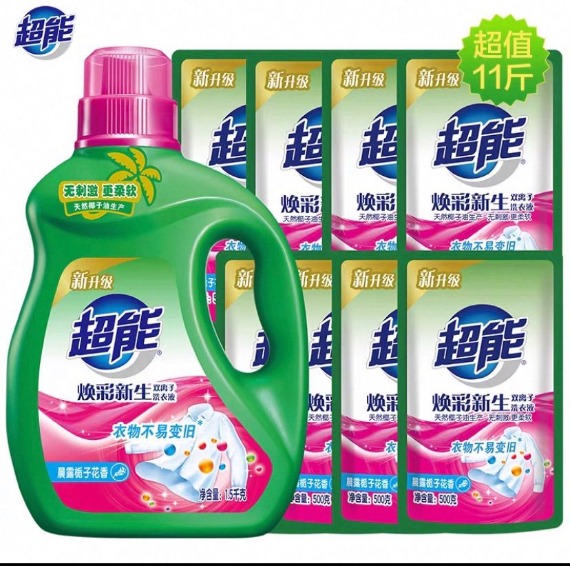 [猫超]超能双离子焕彩新生洗衣液5.5kg超值11斤护色护衣1瓶8袋,到手39.9元