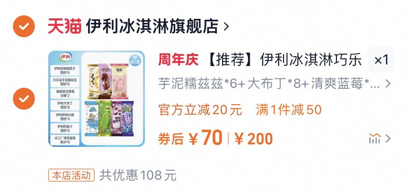 伊利冰淇淋巧乐兹经典大布丁甄稀苦咖啡搭子组合雪糕40支70元