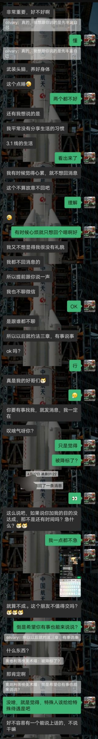 这是我和我初恋的聊天记录,我们在18年初中毕业后就没有再联系过。现在两个人都上了大学,我在四川,她还在西安。某天晚上emo后又尝试给她发了QQ申请,居然通过了(她说是不常用QQ了)。现在过了约两个礼拜,基本每天两个人都可以聊到凌晨一两点,而且两人也表达了当时未表达的心意。这天她给我发了如下内容,我现在没有谈恋爱的打算,她也没有,但是我想在毕业后追她。我们现在的关系就像我和我好哥们一样,可以长久不联系,但是关系还是非常好,想问一下各位,还有进一步的可能吗?