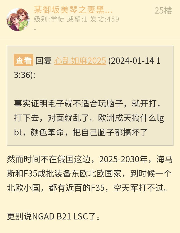 这是给涨价吹风啊,当初预估b21轰炸机5亿美元一架,22年涨到了7.5亿,不知道最后交付会是什么价格