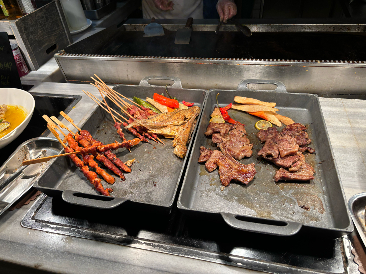 这个一排好几个菜,瞄了一眼我去那么多牛尾,都没人拿,我也有点吃不下了