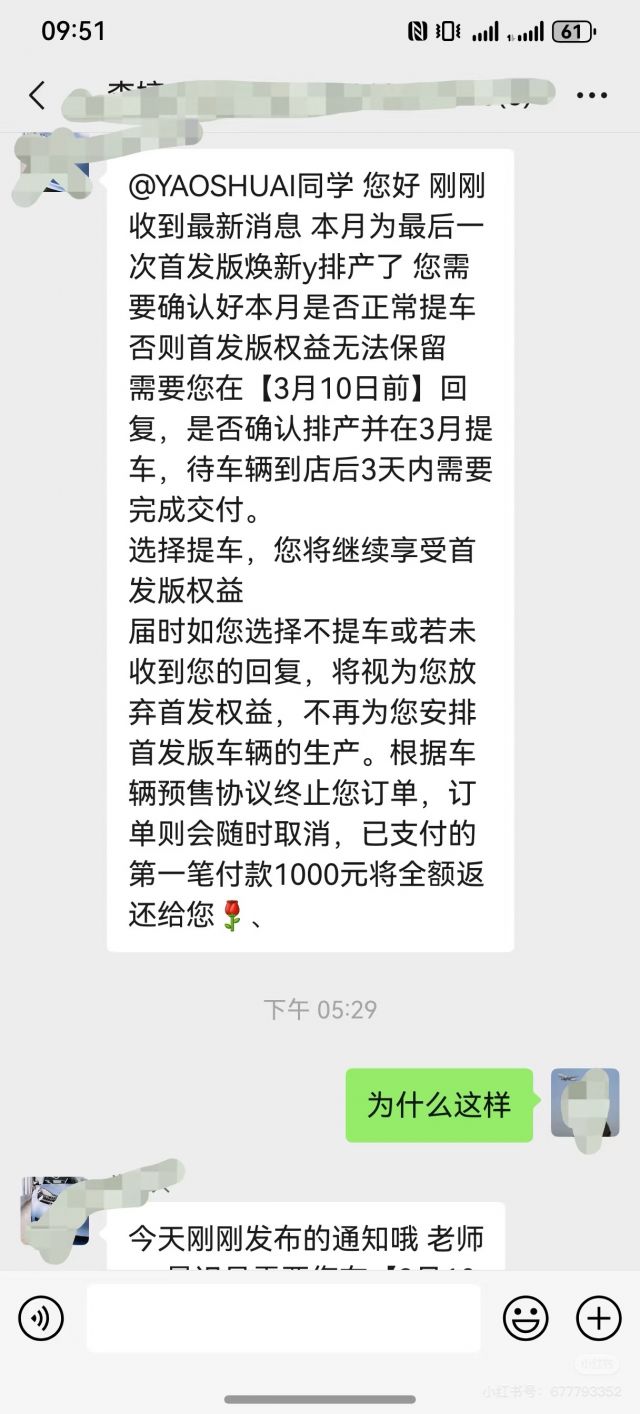 大定下了p7+,晚上通知周四到,让三天内提车,不然解配,理由是厂商要求,我看了眼协议,也没有类似约定,我问哪里的规定,交付来句是小鹏的要求,