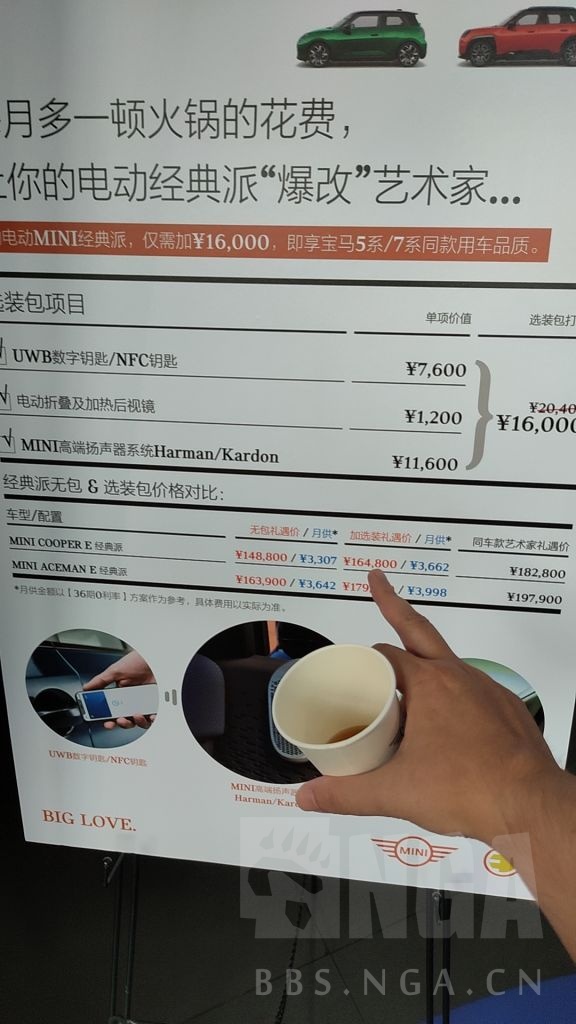 8、丐版14.88,但是没有车,强x1.6万的选配(艹),江苏15万以下补贴9000,选装以后补贴13000,约等于强x你1.2万;选装我忘了,除了一个无钥匙进入外,其他感觉可有可无。