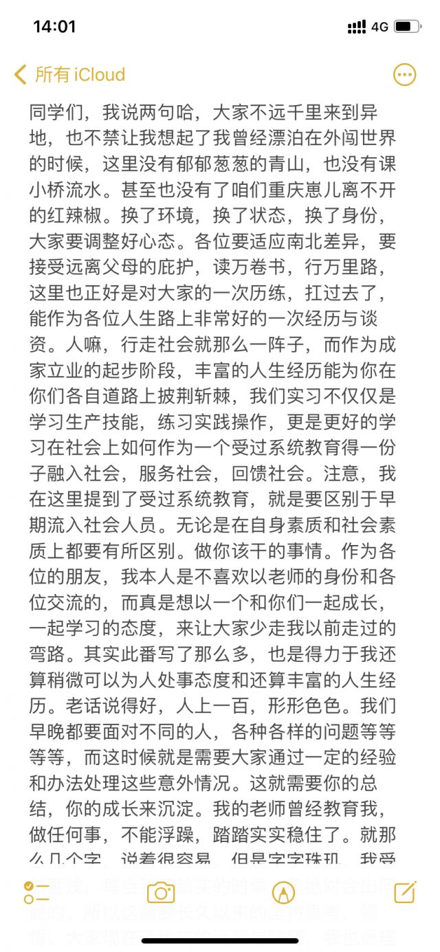 昨天晚上给孩子们写了一段话,也不知道有用没用,可能没啥用,有用就不是大专生了