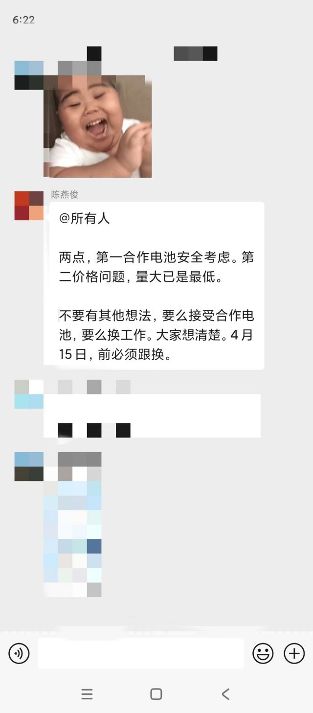小弟山姆离职后,又开始了跑外卖,就在今天,群里面说以后电池只能统一租一个厂家的,不然不给开工