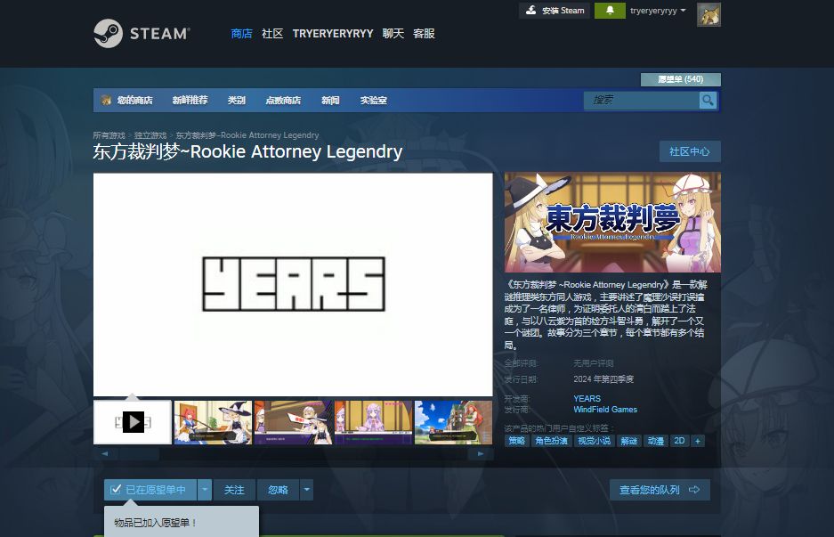STEAM链接:[https://store.steampowered.com/app/2719130/Rookie_Attorney_Legendry/ https://store.steampowered.com/app/2719130/Rookie_Attorney_Legendry/]
