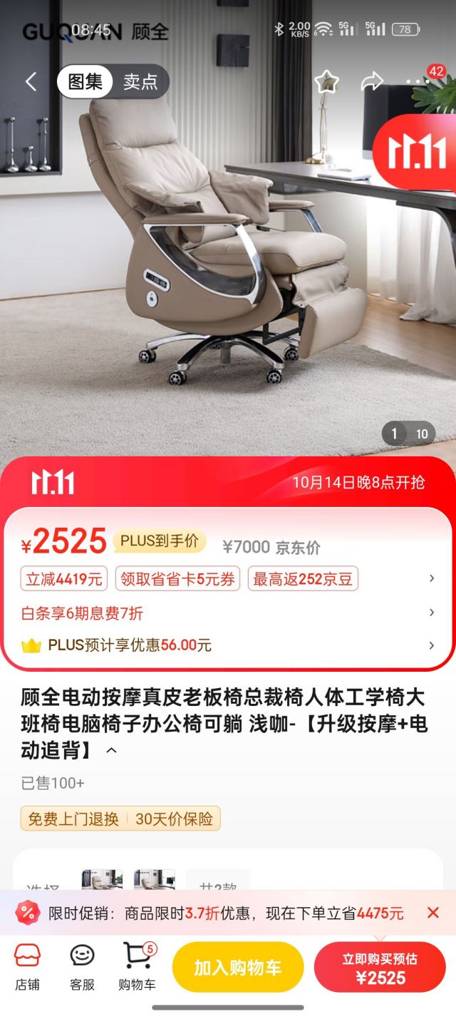 顾全这几个之前领四川消费券可以0元购,不过说实话不如网布座椅舒服,皮的太闷了,坐垫填充也是类似羽丝棉的材质,久坐感觉塌陷严重。我只领了一张3000-900,买的手动仿皮的,不知道贵一点的会不会好一点。不要升降的话还是单人位功能沙发躺起来舒服