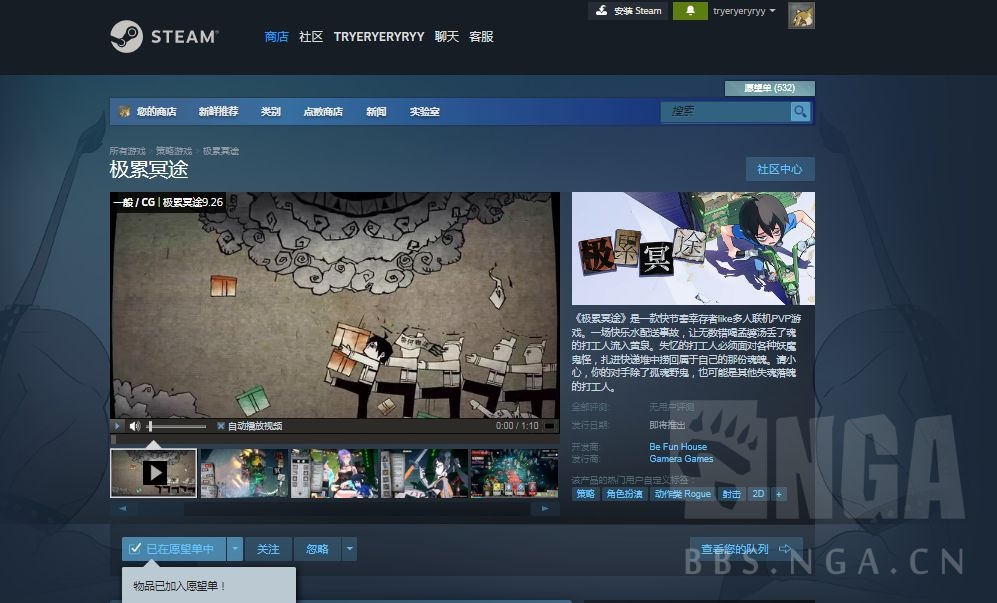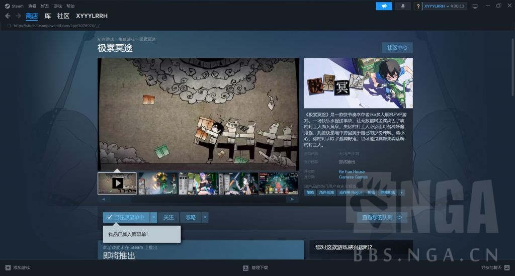 将《极累冥途》添加至你的愿望单,并将截图回复至本帖内,10月8日抽10个小伙伴送出5刀充值卡一张。