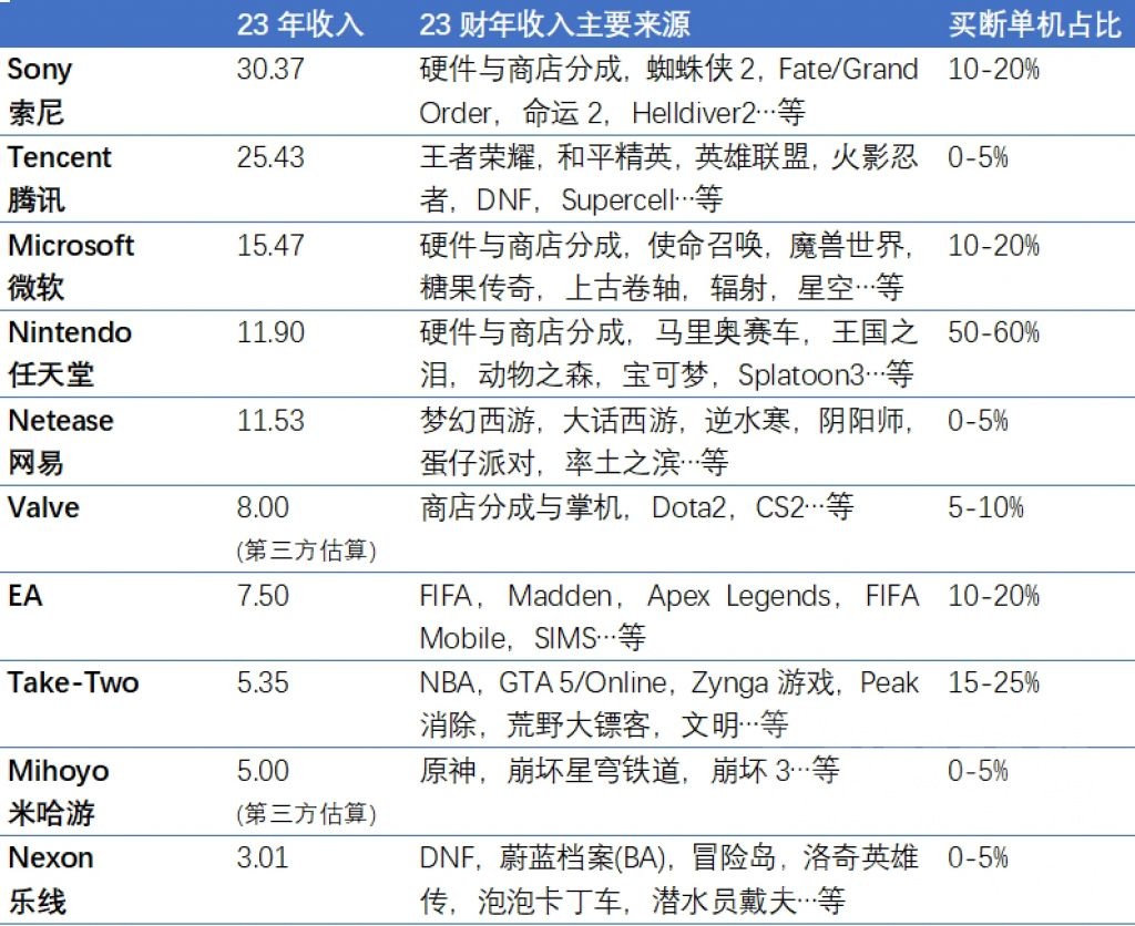 对比日本美国欧洲的游戏大厂,例如任天堂、卡普空、史克威尔艾尼克斯、索尼、育碧、动视、r星、蠢驴等,开发出了大量经典口碑极好还挣钱的游戏系列,例如给他哎、勇者斗恶龙、最终幻想、巫师、大表哥、怪物猎人、神秘海域、刺客信条、马里奥、塞尔达、火焰纹章等,全都是口碑爆炸还大挣特挣