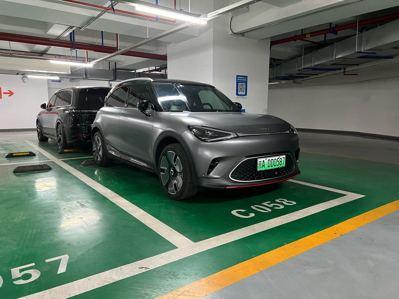 内饰与空间:三个炮筒型的出风口非常的奔驰,氛围灯在晚上的效果也是一脉相承;HUD的分辨率和字体大小很合适,但除导航和车速之外显示的东西不多;空间上作为跨界车还是有惊喜的(冷知识,这车虽然说自己suv,但蓝本写的小型轿车)座椅能调得比较接近轿车,前后头部空间距离天幕也均有个一拳多。缺点,一是遗传奔驰的什么价位给什么材料的毛病,全车软包相较同门兄弟极氪X那几乎为0,基本全是塑料,夏天进车开空调降温过程中时不时的响两下塑料收缩的嘎巴声,而且b版竟然还是织物顶,连翻毛都不给;二是如果提车后贴深色车窗膜的话,夜间氛围灯会反光导致影响观察后视镜;三是座椅为了匹配运动轿跑的风格做的比较硬,支撑感足够但是大沙发感不足;最后,空调没有实体按键啊没有实体按键!!!