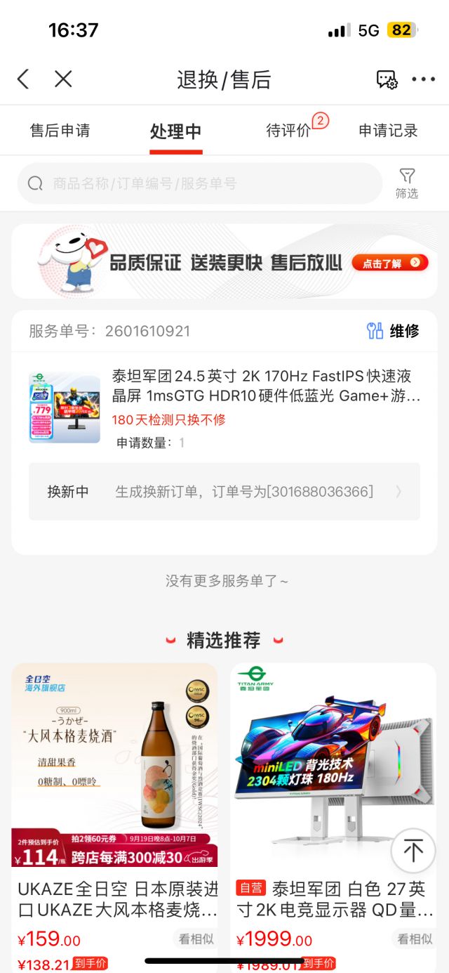 更新后续:电话联系我说可以换新,但是要等7—15天还是3—15天。但是我记得我以前买的KR键盘,有连点情况换新的时候是快递员直接带着新件来换旧件,不知道为啥这个要等