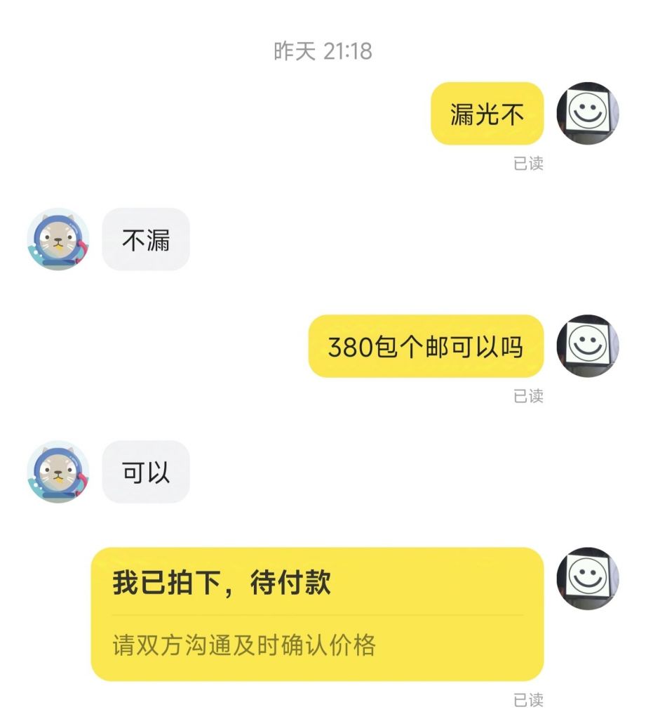 结果有个买家就问了两句话,就下单了,总共就6分钟时间,一句问:电脑还出不出,第二句问:是不是走验货宝他出检查费,我包邮。