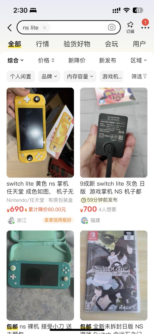 1)ns lite黄色,一手自用 机器 700 两张游戏 口袋重制版+异度之刃3 200+淘宝有个switch会员游戏合购,免费送