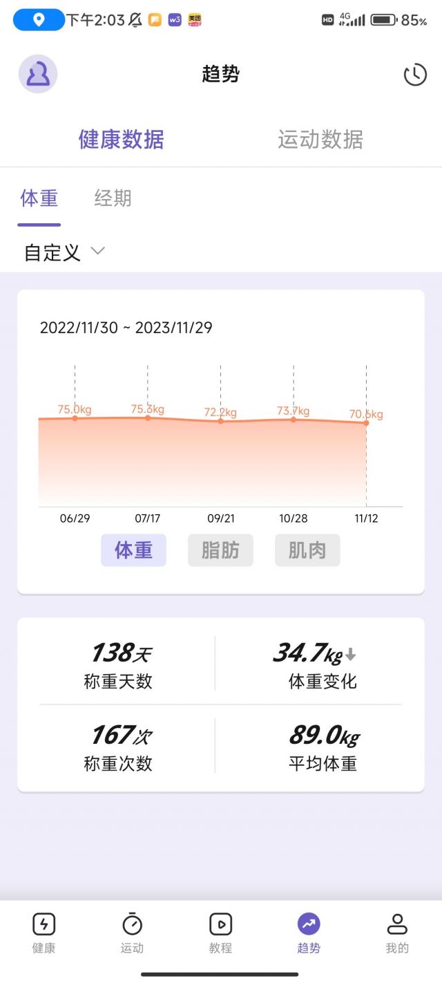 在这里不推荐采用我的极端方法来减肥,每天只吃一顿早饭。因为害怕大体重膝盖报废,只能加大运动的强度和时间,爬楼梯和爬坡的角度,4个月内,室内加室外大概走了1200公里,体重从117kg减到了现在的78.9kg,重度脂肪肝变为现在的轻度,心肺功能也得到了提升,代价是肌肉也掉了接近8公斤。