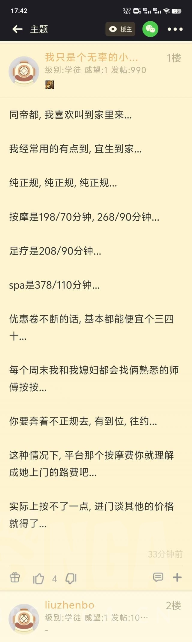 昨天老婆单位请领导,喝得有点多今天一天都宿醉,到晚上醒了又说浑身难受非要找个上门按摩,我说这都是擦边的不是正规按摩,她非不信还给我看都是穿着正规的。我说那你找吧。