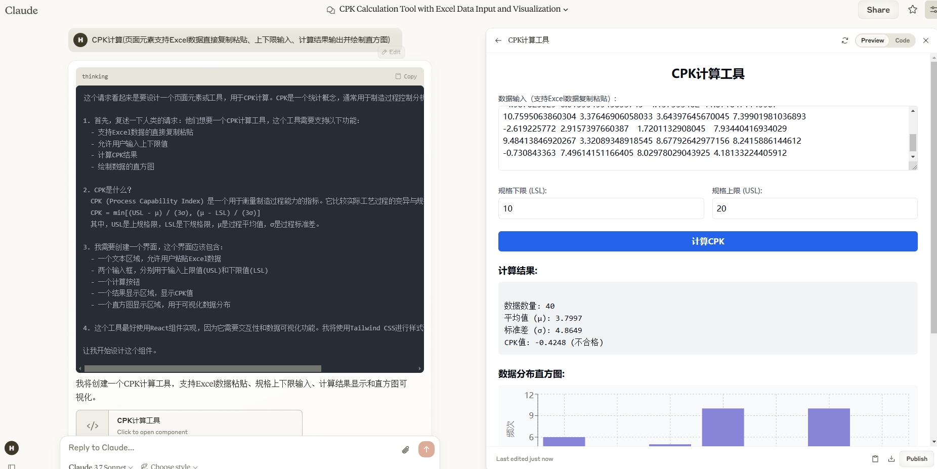 CPK计算(页面元素支持Excel数据直接复制粘贴、上下限输入、计算结果输出并绘制直方图)